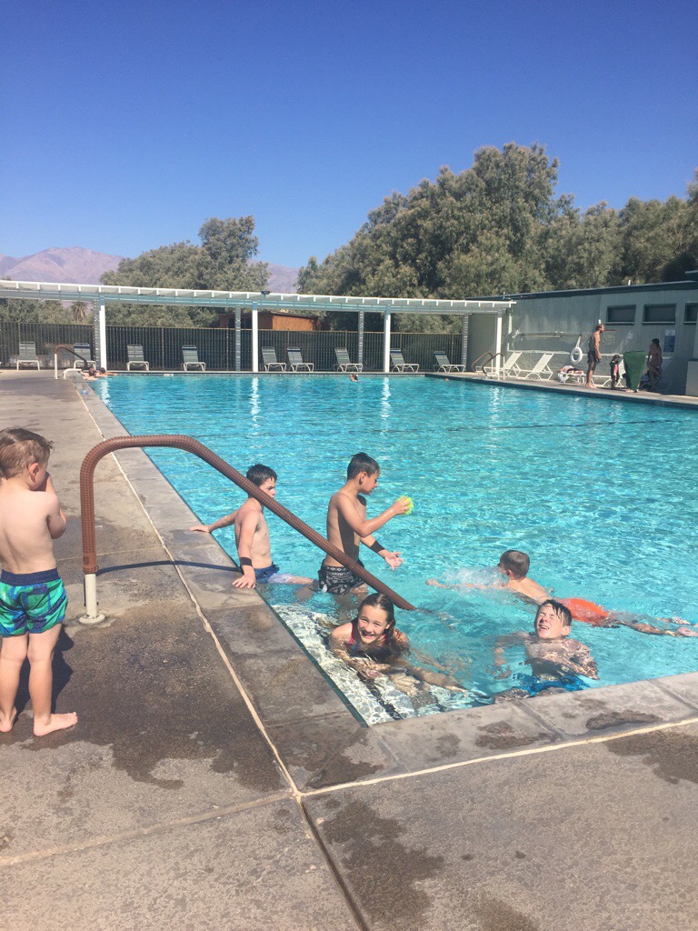 Valleys but awesome. We got out of the car to take some photos of sand dunes and it was 45 degrees. We were right in the desert. It was bizarre as we could still see peaks of snow on the hills. In one day we were having snowball fights and the other we were in 45 degrees heat. With nothing ahead of us while driving we turned a corner in to an oasis. Our resort really nice with an amazing pool. It’s all very western like here. Like being in a movie. We had a magnificent dinner at a steak house. Spent most of the time in the pool. Today we are off to Vegas.