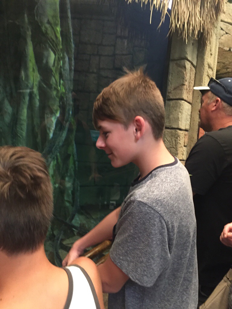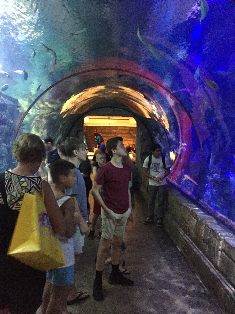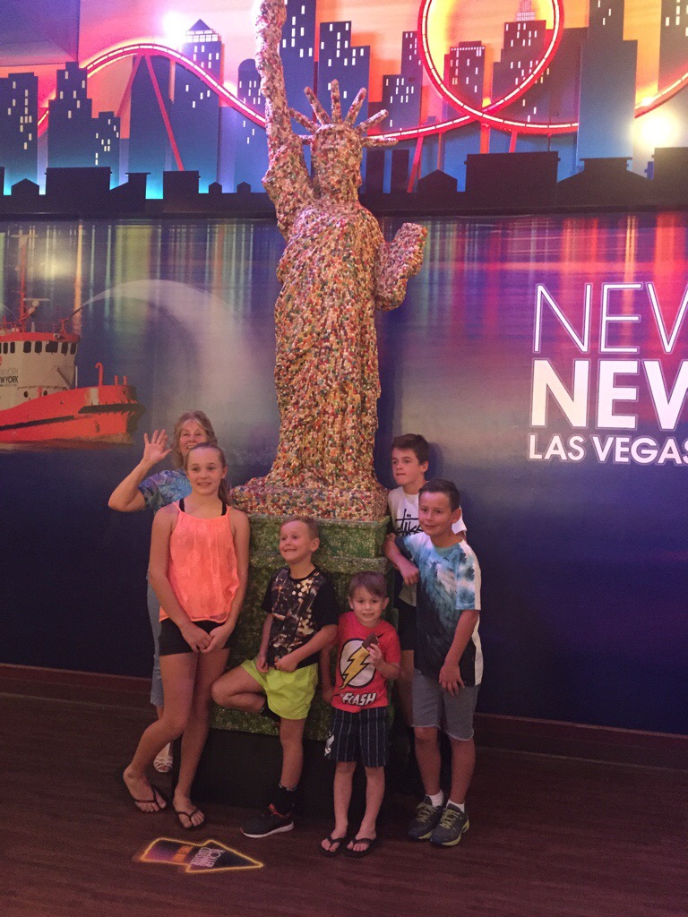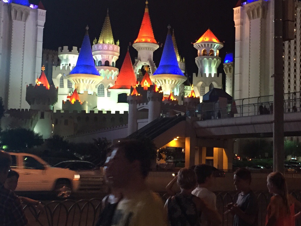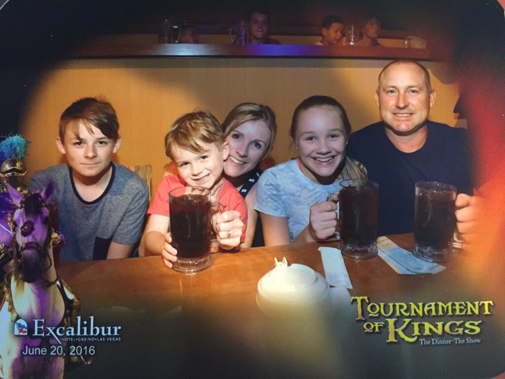 Hotel Excalibur is huge like a fairy castle. We have done many things. A four level M&M world. Kiddie heaven. Hard Rock Cafe for dinner. We walked the strip many times as there is so much to see. Last night we did an awesome show called Tournament of Kings. The horses were beautiful. We had to eat chick with our hands and had big glasses as we cheered on our King (Austria).!! Sam was beside himself with excitement. Off to Hoover Dam and Grand Canyon. Kids also rode the New York Roller Coaster. We also went to the Mandlay aquarium Max was in his element. It was like having our own tour guide 😂.