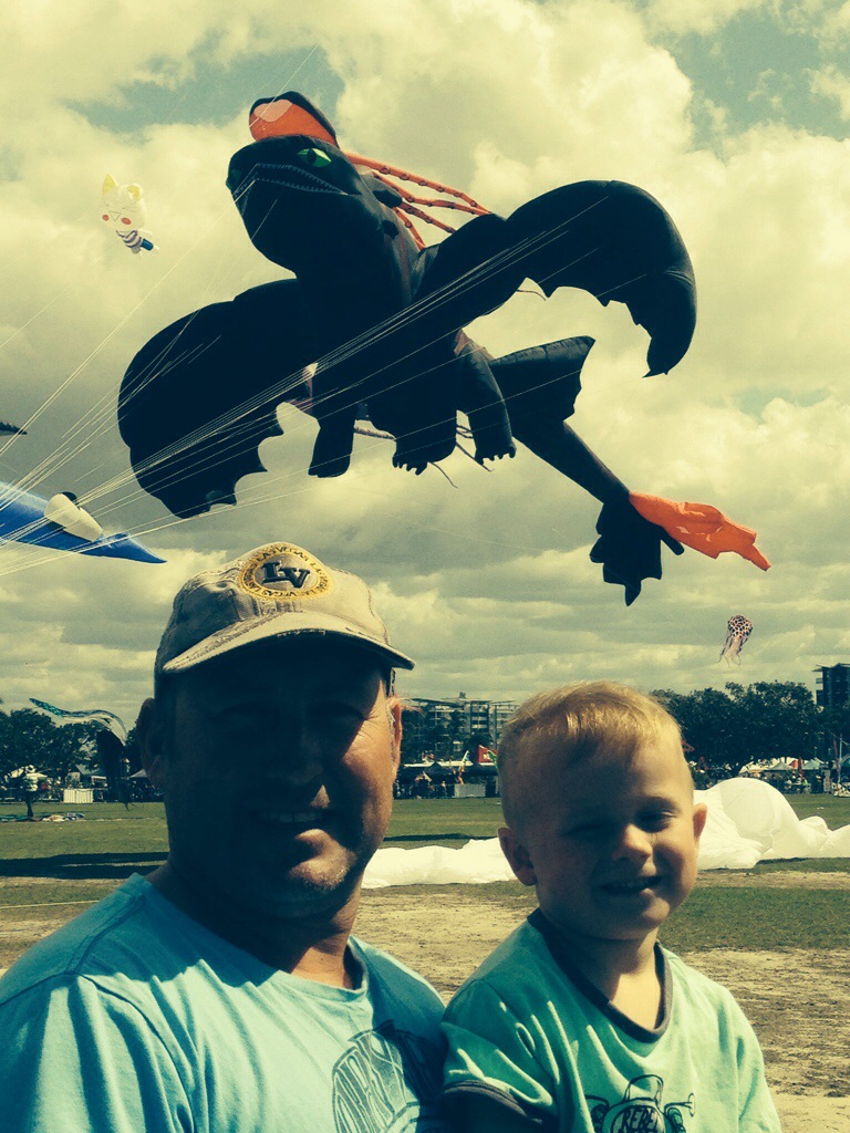 We then went for a drive along the esplanade and had no idea that there was a huge Kite Festival on. Supposedly held every year. Sam could not believe his eyes when he saw this humongous “Toothless” kite flying in the air (biggest fan EVER). We had a walk around the festival and Max brought himself a kite. It was so windy too windy to fly the kite as it was going nuts so we will get it out another day.