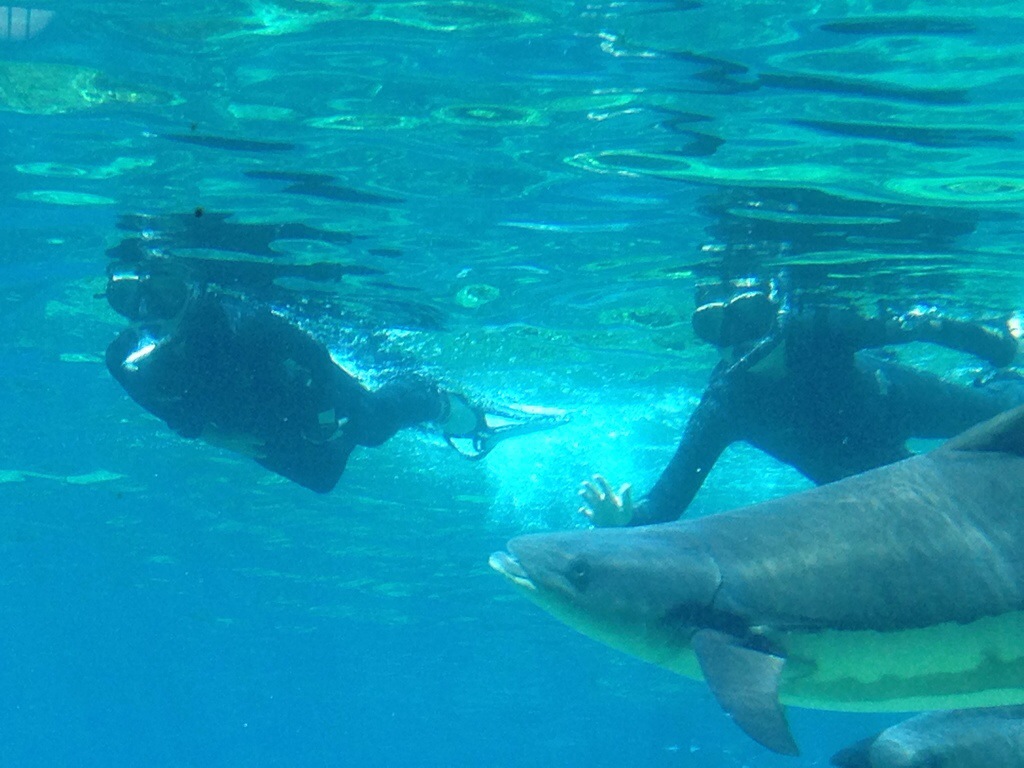 Today was a great day. We watched a special dolphin show early before Seaworld opened just for resort people. Holly then spent the morning with the Dolphins on the Dolphin Aqua adventure which she has been looking forward too for weeks. Her dolphin was called Cirrus and he was amazing. Max and Ethan did an awesome snorkeling adventure which was amazing value for money. They got to snorkel in the main tank with Leopard Shark, eagle rays, nemo’s, Dory’s and Cobia’s. They loved it. It was great watching them in the underwater observatory.