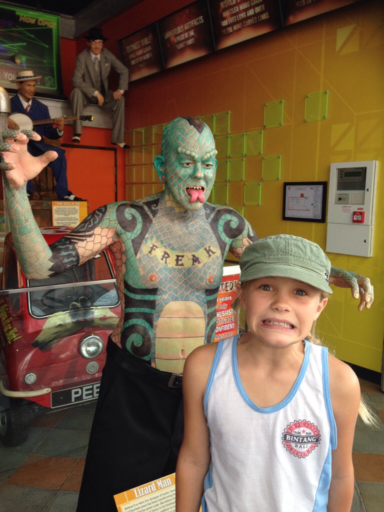 Today we started by going to Surfers Paradise to look around and walked Cavill Ave. Max saw a sigh to Ripply’s Believe it or not museum, he begged mum if we could go because he thought it was going to be cool and he already has the book. We ended up going and saw some really cool stuff, things and people like the lizard man, the tallest man Robert Wadlow who weighed 440 pounds and was 8ft 11″ at just 22, Lighthouse man (he had a candle growing out of his head), vampire women, and the fattest man alive who looked like a girl. The scariest thing was the shrunken heads they were freaky.