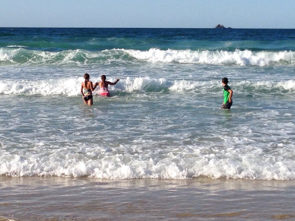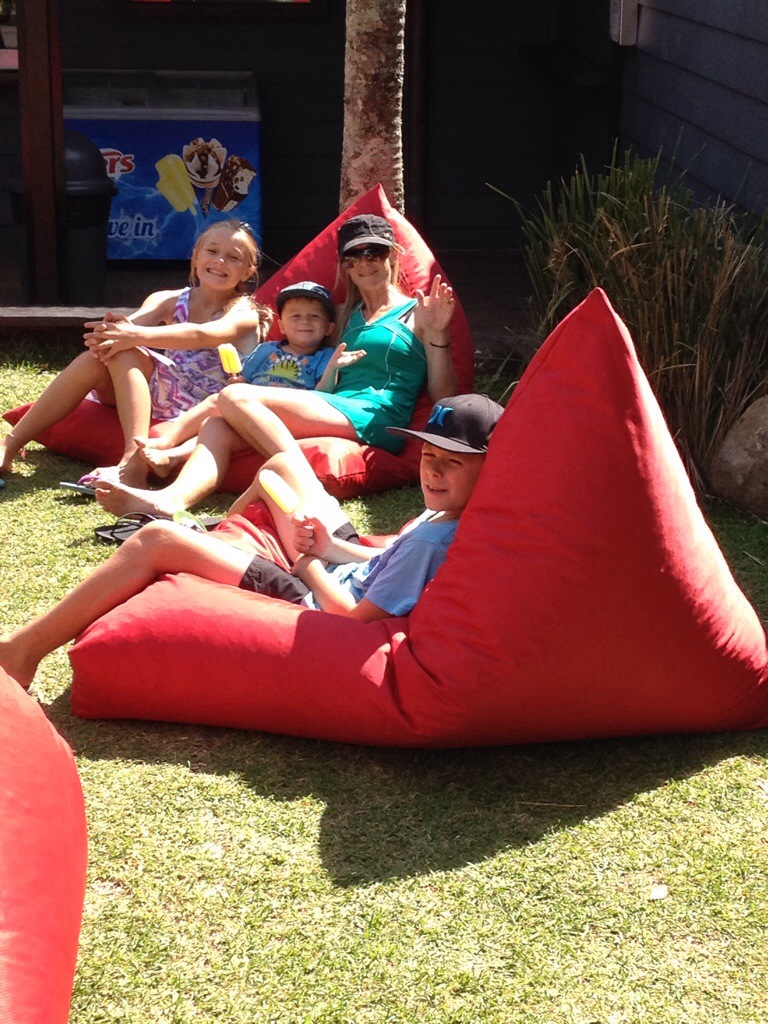 Today we woke up early and went for a walk along the beach to the other side of Byron. I had an Iced Coffee and Adam and Holly had an Iced Chocolate at the Byron Beach Cafe. The Iced coffee was so yummy but the Iced chocolate wasn’t flash. Adam and Holly said that they must have used Iced Magic instead of topping as it tasted just like milk and the chocolate was too frozen to suck up the straw which was disappointing. It was such a relaxing atmosphere with bean bags to sit on. We took a drive up to the lighthouse but it was so busy we couldn’t get a car park so we are heading back up there tomorrow. Views were amazing. We did some more shopping in the afternoon. We tried flying Max’s kite in the big winds but pretty unsuccessfully.